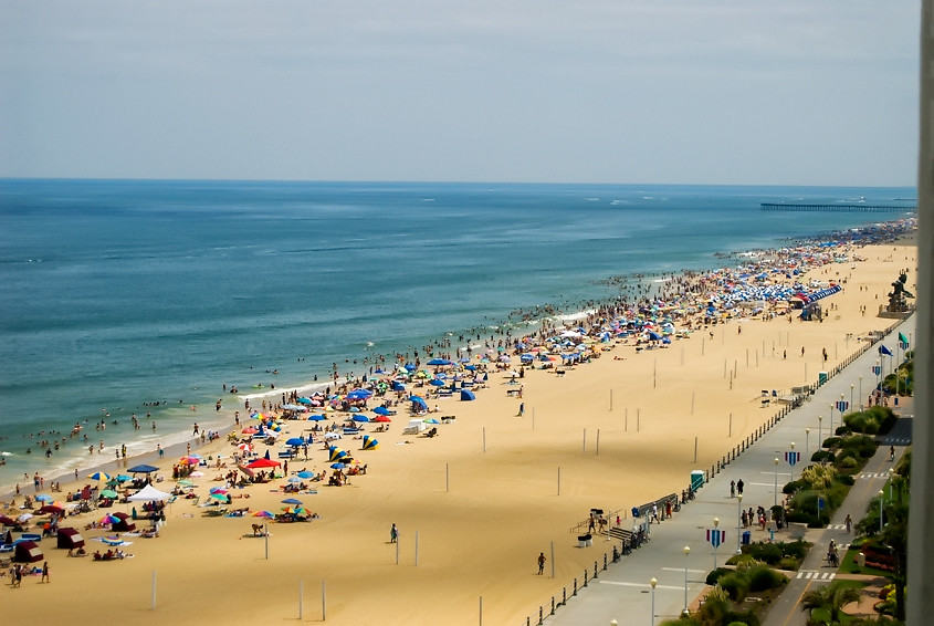 The first picture is the Virginia Beach boardwalk and the beach< and the seocnd picture is the amusement park in the Virginia Beach area.